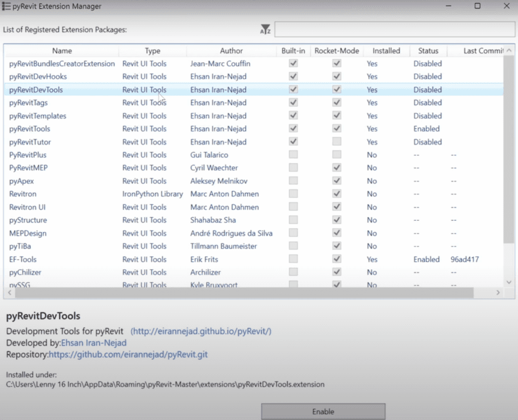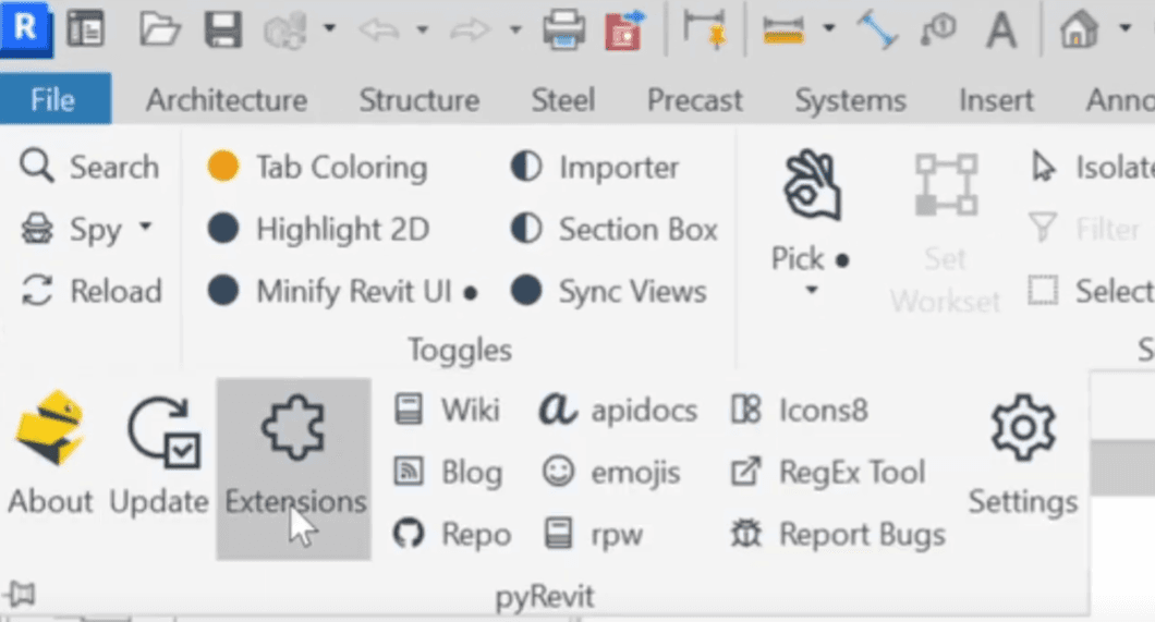 Once you've enabled this extension you will see pyRevitDevTools tab in Revit.