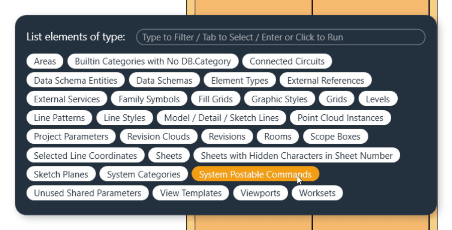 pyRevit -> Spy -> List Elements -> System Postable Commands