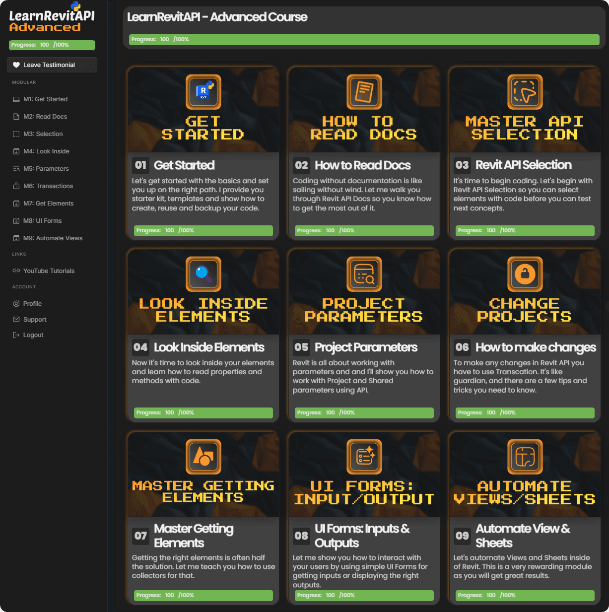 Dive deeper into Revit API with more in-depth lessons and a huge focus on practice to learn by doing.