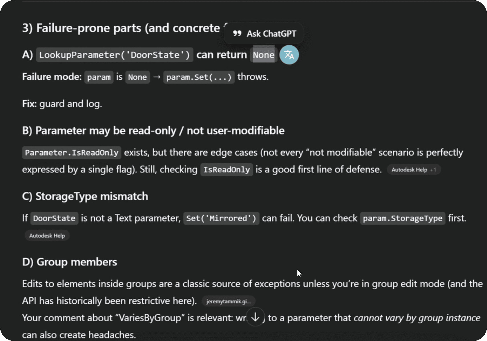 Also, we'll encounter a few exceptions due to Groups… And we'll need to decide on how to handle parameters that do not have VariesByGroup…