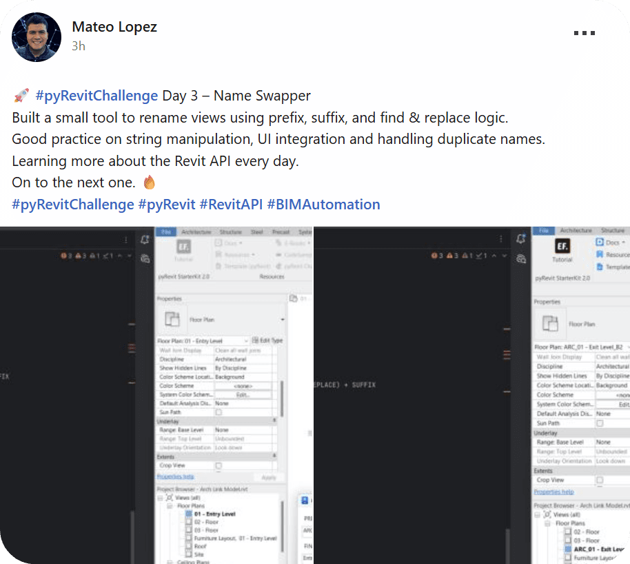 So, why don't we create a tool to batch rename your views? Plus, the same logic applies to renaming anything you want in Revit!