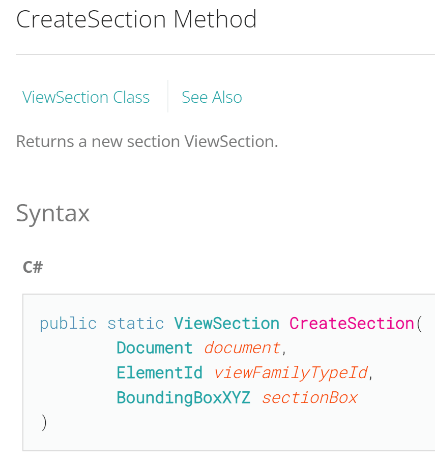 First of all we need to check Revit API documentation to see what's necessary to create a ViewSection.