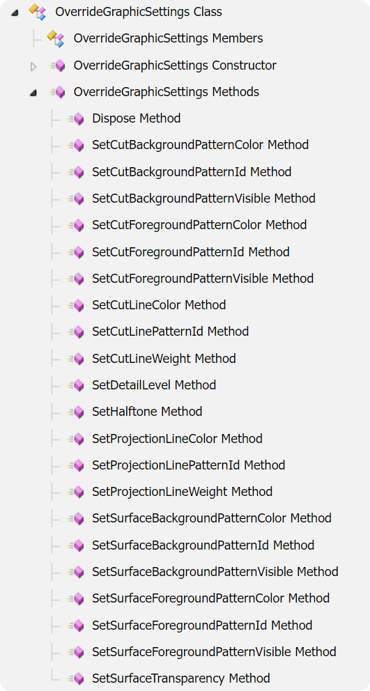 As you can see we just need to provide ElementId and OverrideGraphicsSettings