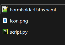 In this case you have to create a file FormFolderPaths.xaml in the same folder as yourscript.py, because I will be referencing the name of the file inside the python file.